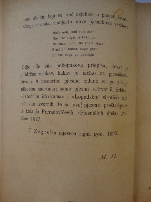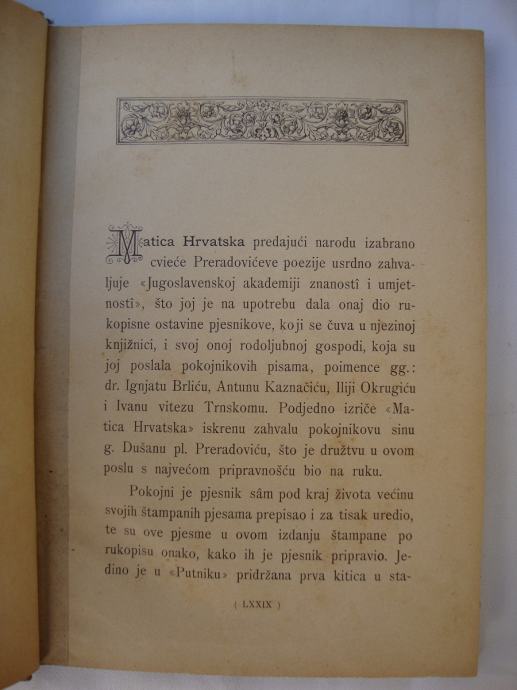 knjižica MATICA HRVATSKA PRERADOVIĆEVE POEZIJE