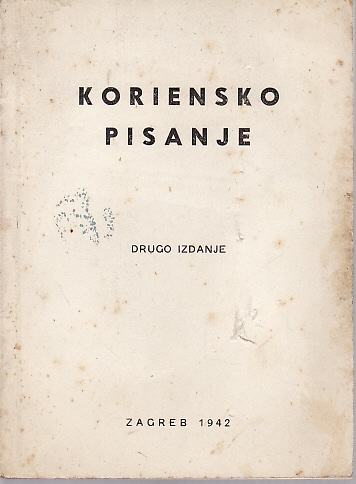 KORIENSKO PISANJE - ZAGREB 1942 PRIREDIO IZDAO URED ZA HRVATSKI JEZIK