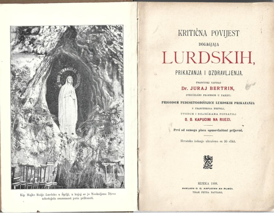 KRITIČNA POVIJEST DOGAGJAJA LURDSKIH - dr. Juraj Bertrin