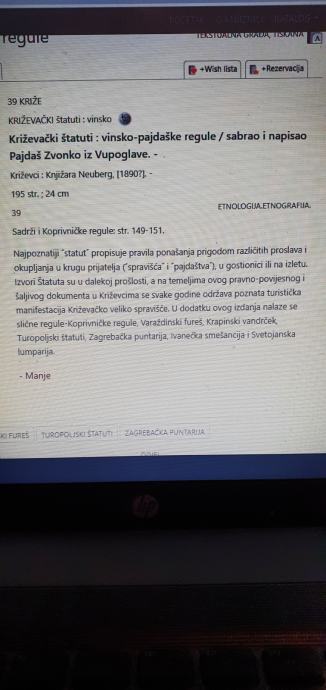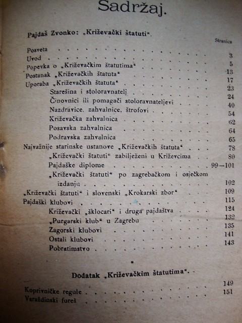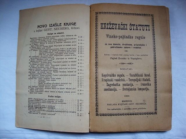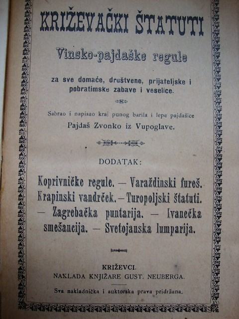 KRIŽEVAČKI ŠTATUTI VINSKO-PAJDAŠKE REGULE /PRVOI IZDANJE 1890.