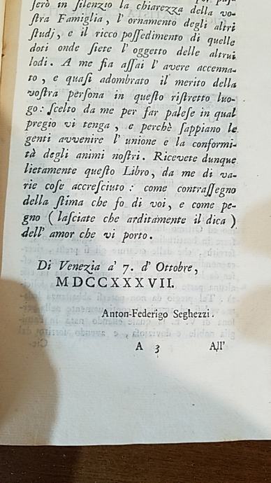 1738; Sesta edizione delle passate molto piu illustrata, ed accresciuta. Si sono aggiunte le rime di Galeazzo di Tarsia, autore contemporaneo ; In Padova : appresso Giuseppe Comino (In Padova : [Giovanni Antonio & Gaetano Volpi] appresso Giuseppe Comino, 1738).