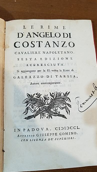 Le Rime d'Angelo Di Costanzo Cavaliere Napoletano 1723.