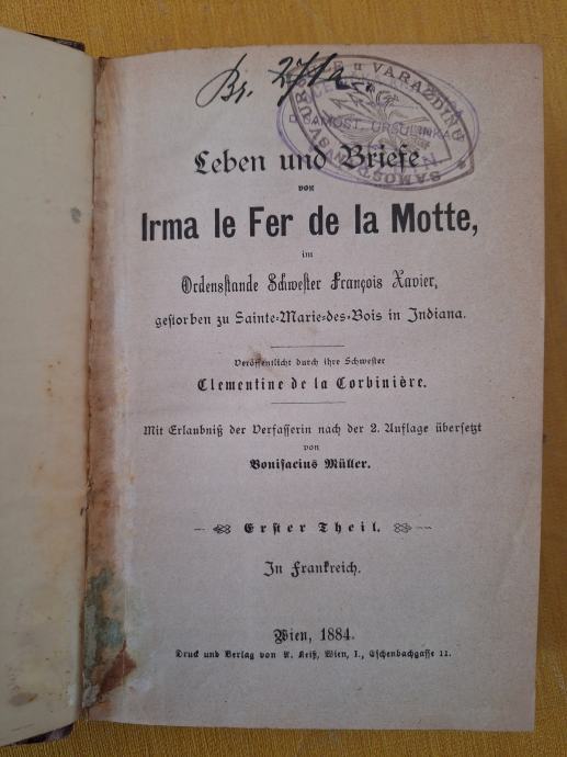život i pisma Irme le Fer de la Motte objavljena 1884. u Beču