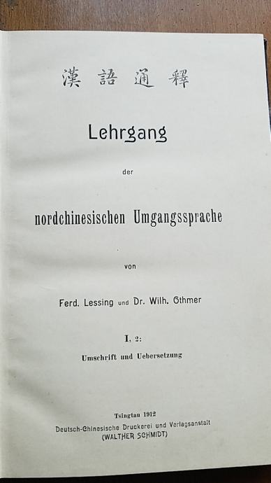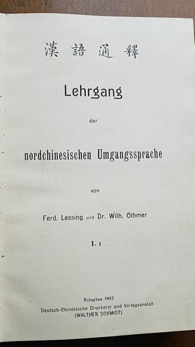 Ferdinand Lessing/Wilhelm Othmer: Lehrgang der nordchinesischen Umgangssprache (Tsingtau: Deutsch-Chinesische Druckerei und Verlagsanstalt (Walther Schmidt), 1912.)