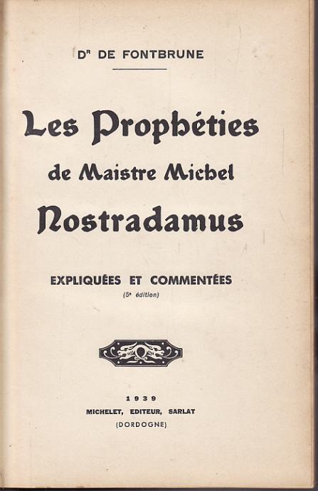 Les propheties de maistre Michel Nostradamus - De Fontbrune Dr
