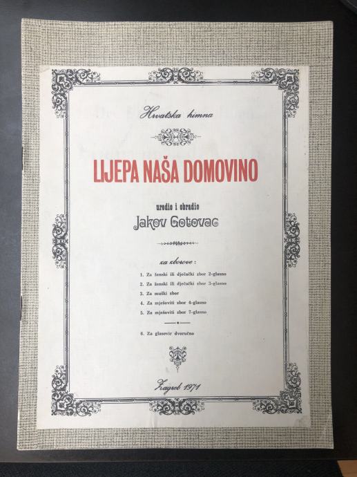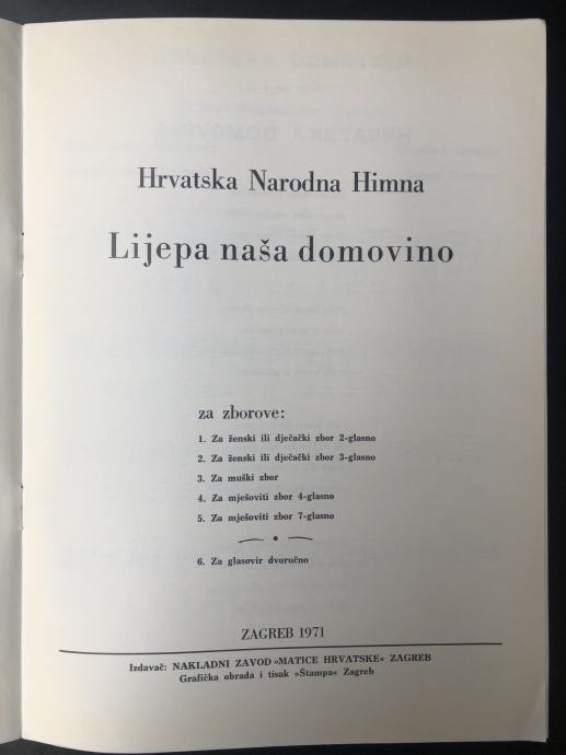 LIJEPA NAŠA DOMOVINO. Hrvatska himna. Zagreb, 1971.