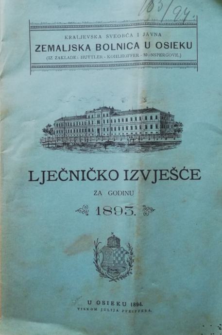 LJEČNIČKO IZVJEŠĆE ZA GODINU 1893., Osijek, 1894.g.