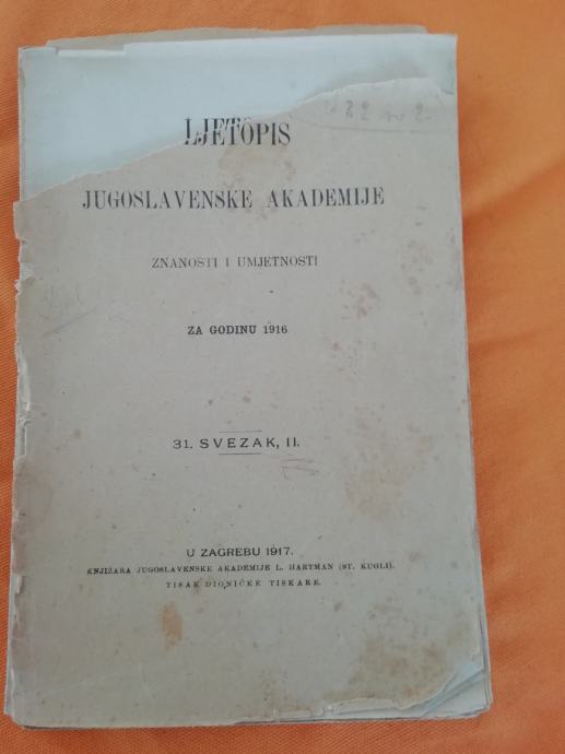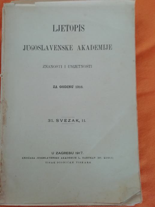 Ljetopis jugoslavenske akademije znanosti i umjetnosti za 1916.g.