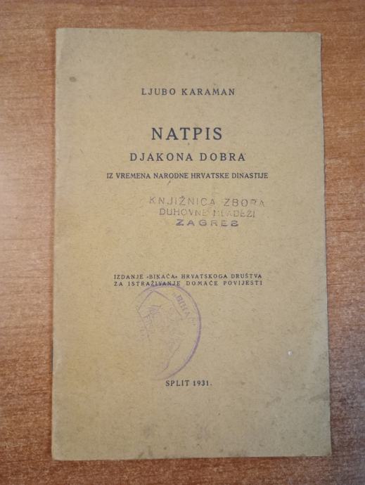 LJUBO KARAMAN - NATPIS DJAKONA DOBRA IZ VREMENA NARODNE HRV. DINASTIJE
