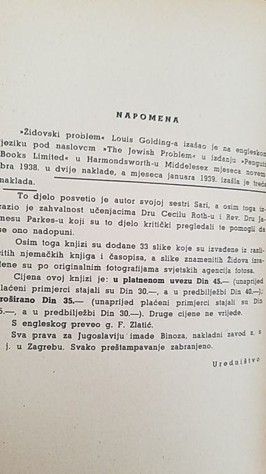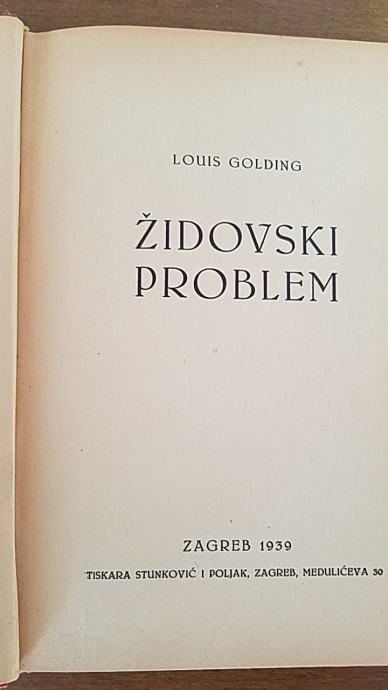 LOUIS GOLDING, ŽIDOVSKI PROBLEM, ZAGREB, 1939.