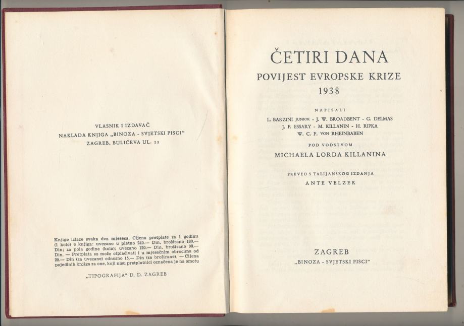 M. Killanin Četiri dana Povijest evropske krize 1938