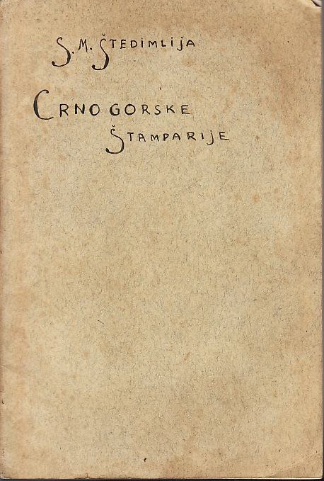 S. M. ŠTEDIMLIJA : CRNOGORSKE ŠTAMPARIJE , ZAGREB 1938.