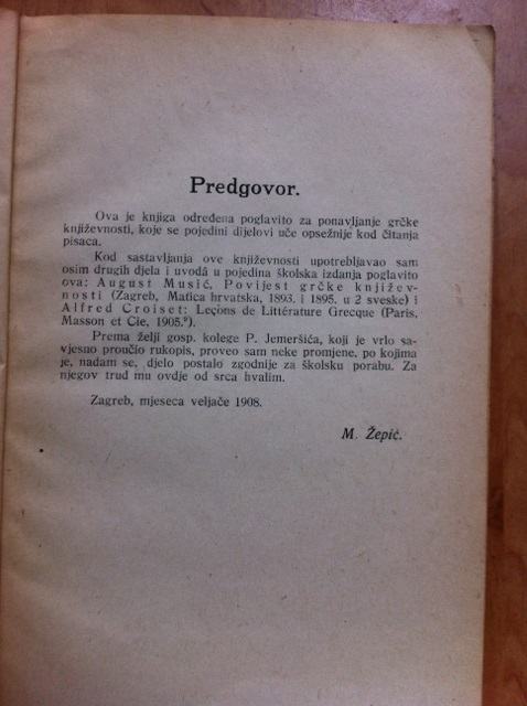 M. Žepić, Pregled grčke književnosti, klasična grčka književnost, 1927