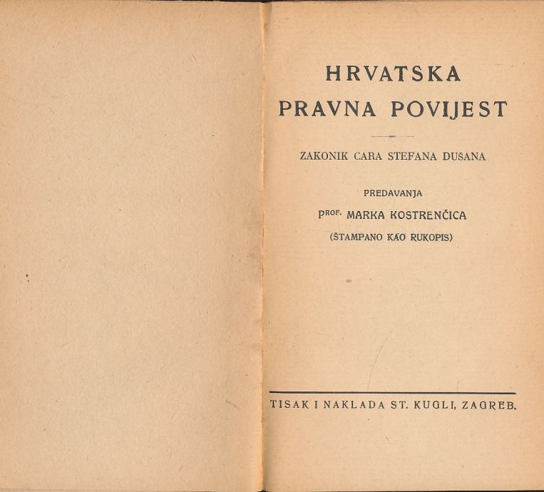 Marko Kostrenčić Hrvatska pravna povijest Zakonik cara Dušana