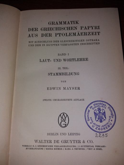 Mayser-Grammatik der griechishen papyri aus der Ptolemaerzeit