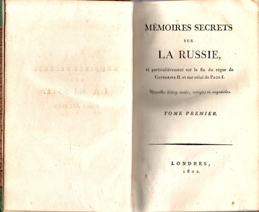 Tajni memoari o Rusiji, a posebno o kraju vladavine Katarine II i Pavla I.