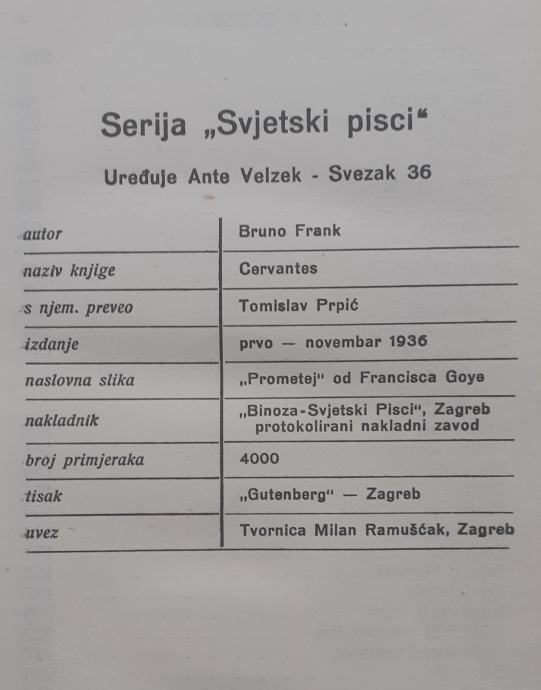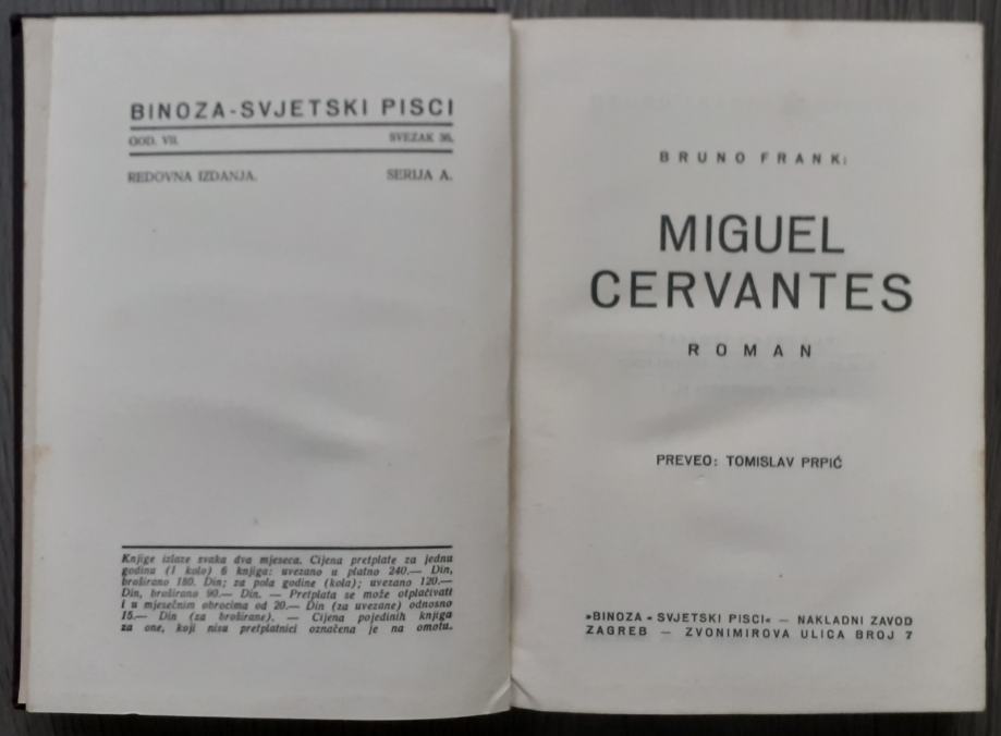 Miguel Cervantes, prvo izdanje iz 1936.g.