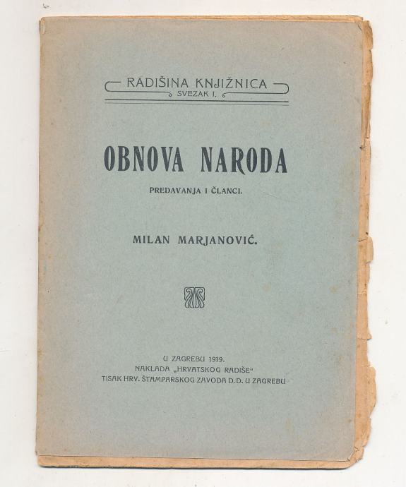 Milan Marjanović Obnova naroda potpis Antun Barac