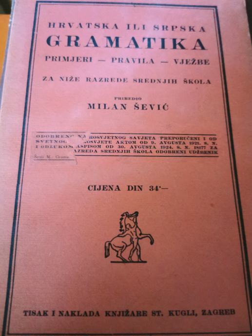 Milan Šević: Hrvatska ili srpska gramatika za niže razrede srednjih šk