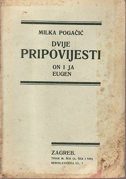 2. MILKA POGAČIĆ : DVIJE PRIPOVIJESTI On i ja Eugen , ZAGREB 1930. MEKI UVEZ 70 STR...……………….45 KUNA