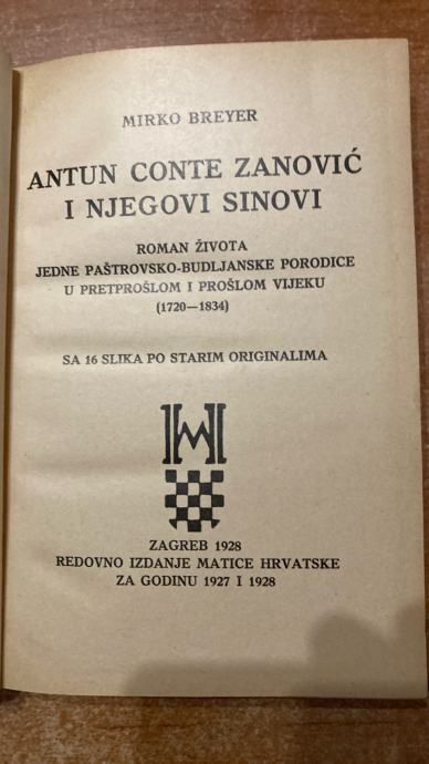 MIRKO BREYER:ANTUN CONTE ZANOVIĆ I NJEGOVI SINOVI ROMAN ŽIVOTA