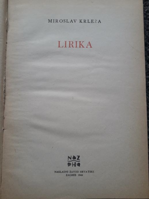 U ponudi je knjiga Miroslava Krleže - Lirika.