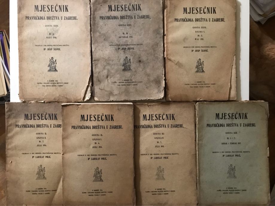 Mjesečnik pravničkoga društva u Zagrebu 7 brojeva (1910.-1917.)