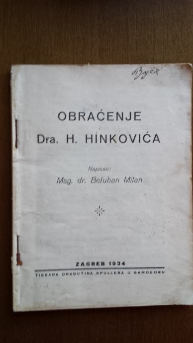 Msg. dr. Milan Beluhan : Obraćenje dra H. Hinkovića 1934.