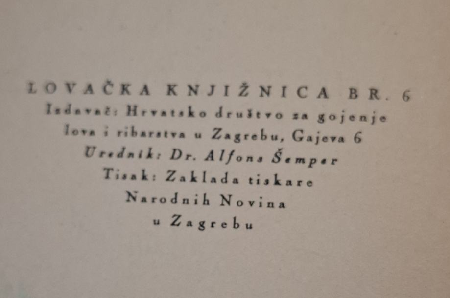 Knjiga 6 Lovačke knjižnice Hrvatskog društva za gojenje lova i ribarstva u Zagrebu, 1937