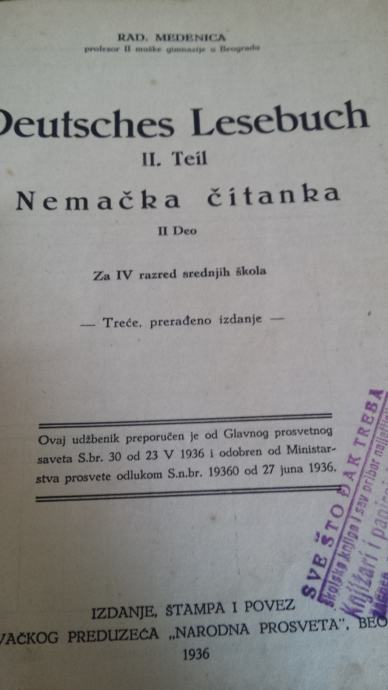 NEMAČKA ČITANKA SA GRAMATIKOM 1936.