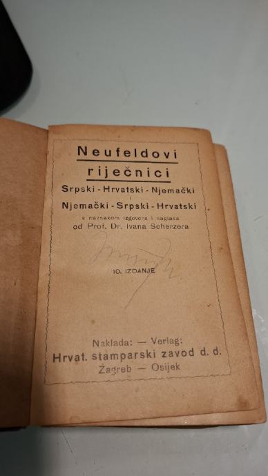 Neufeldov srpsko-hrvatsko-njemački i njemačko-srpsko-hrvatski rječnik s početka dvadesetog stoljeća(1920/30.g.?)