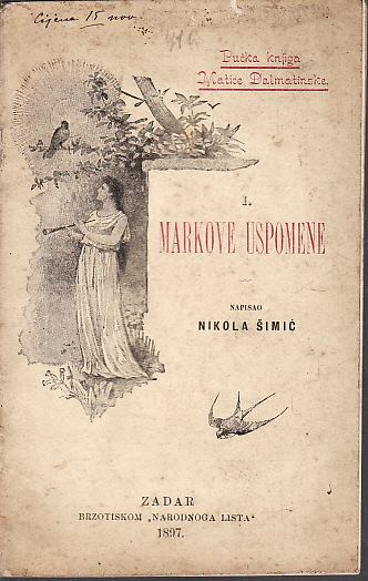 NIKOLA ŠIMIĆ : MARKOVE USPOMENE , ZADAR 1897.