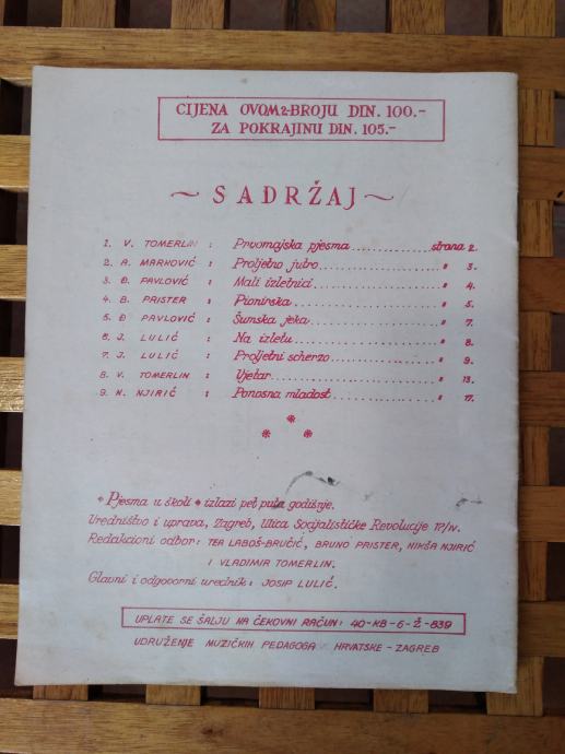 NOTE PJESMA U ŠKOLI 1. MAJ 4 i 5 UDRUŽENJE PEDAGOGA ZAGREB 1958