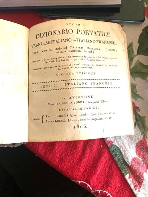 Prodajem francusko- talijanski rječnik u dobrom stanju, Avignone 1806 godina.. izuzetno rijetko..Plačanje na račun ili gotovina.