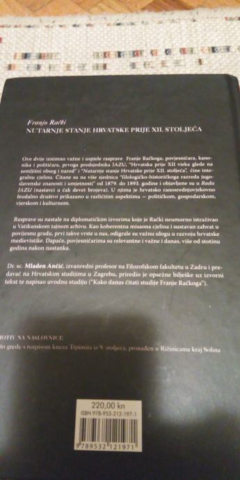 Nutarnje stanje Hrvatske prije XII. stoljeća Rački Franjo