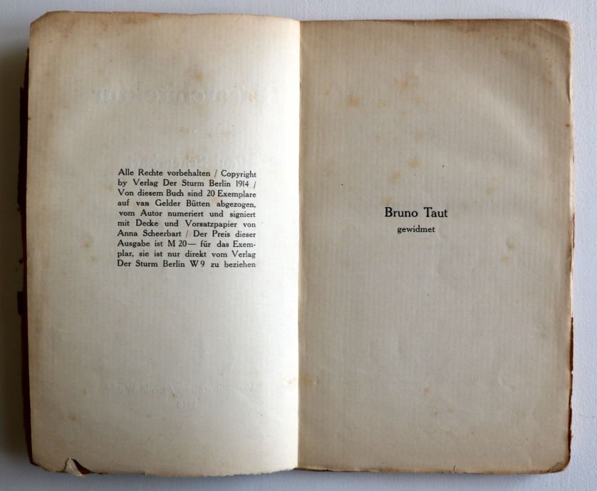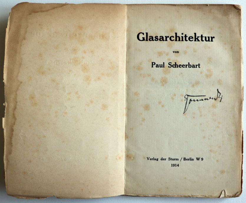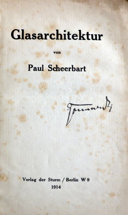Paul Scheerbart: Glasarchitektur [vrlo rijetko]. Berlin, Verlag der Sturm 1914.