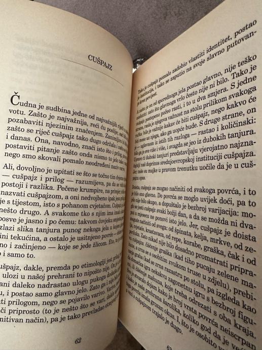 Iznimno popularna knjiga proznih zapisa i crtica o prehrambenim uspomenama Pavla Pavličića sjajan je portret ne samo prehrambenih navika nego općenito i jednoga vremena, 50-ih i ranih 60-ih godina prošloga stoljeća kada, kako autor smatra, regionalizmi, odnosno kontrast sjevera i juga određuju ne samo prehrambeni nego i hrvatski civilizacijski identitet uopće. Pavao Pavličić (1946), prozaik, feljtonist, književni povjesničar i prevoditelj, redoviti profesor na Odsjeku za komparativnu književnost, najplodniji je suvremeni hrvatski prozaik, pisac koji svojom autobiografskom prozom čitatelja osvaja naprečac. Pišući o sjećanjima na slavonsko djetinjstvo i svojoj omiljenoj hrani, a živeći i hraneći se već tridesetak godina pod utjecajem svoje bolje dalmatinske polovice, Pavličević uvodnim Aperitivom i završnim Digestivom dopunjuje svoje djelo i mediteranskim okvirom.