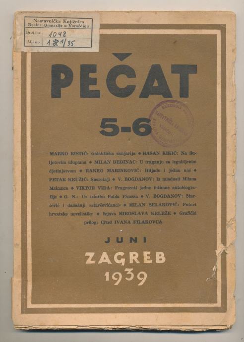 Pečat 5_6 1939 Ristić Kikić Krleža Vida Filakovac Marinković