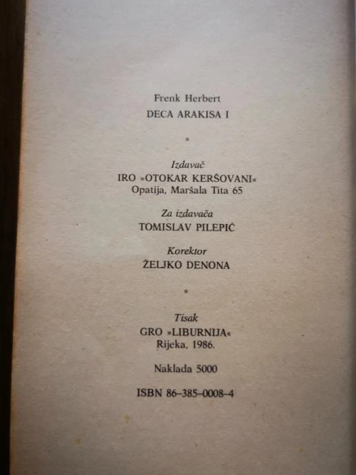 Izdanje iz 1986. godine, meki uvez, na srpskohrvatskom jeziku.