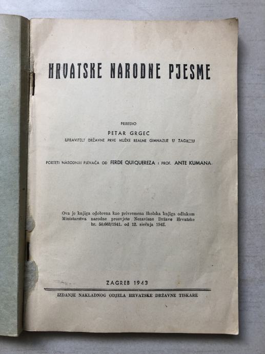 Petar Grgec: Hrvatske narodne pjesme (1943.)