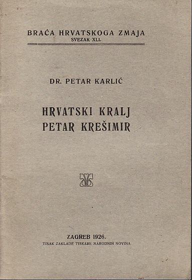 PETAR KARLIĆ : HRVATSKI KRALJ PETAR KREŠIMIR , ZAGREB 1926.