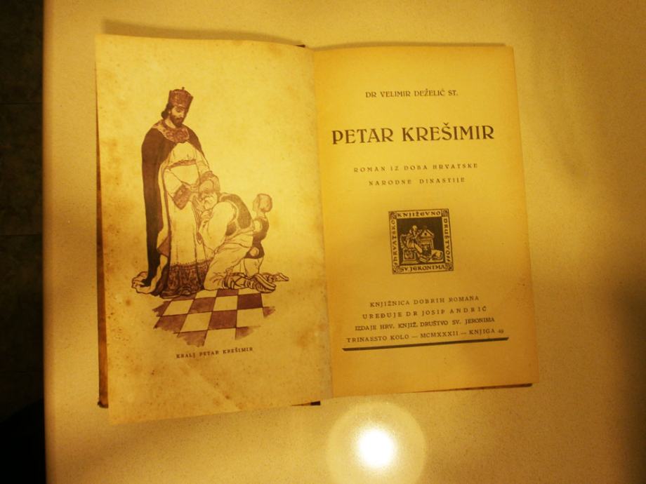 Stara knjiga, roman o kralju Petru Krešimiru, izdanje Hrvatskog društva Sv. Jeronima (1932.g.), ilustracije Gabrijel Jurkić (1931.g.), 188 str. Šaljem poštom, Tiskom ili osobno preuzimanje.