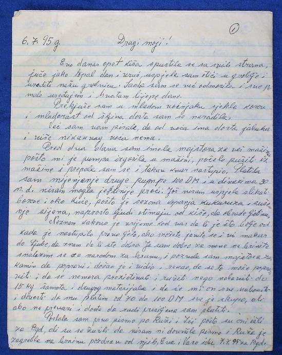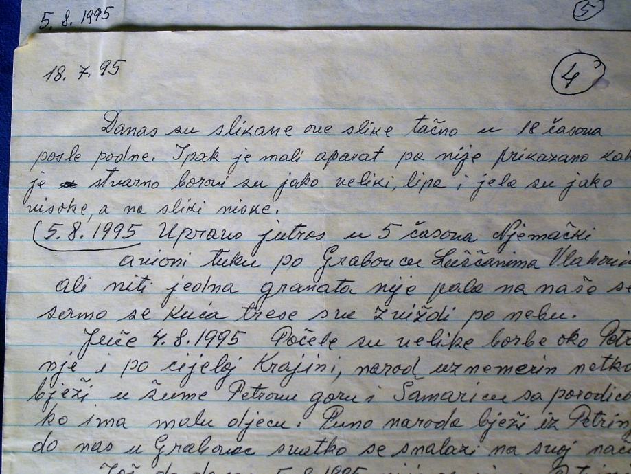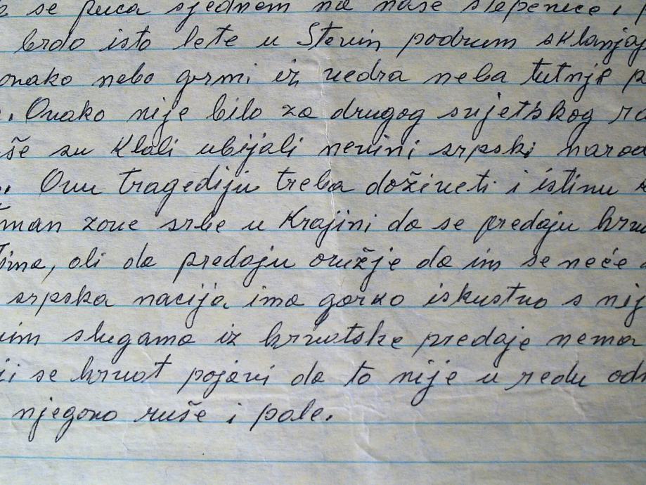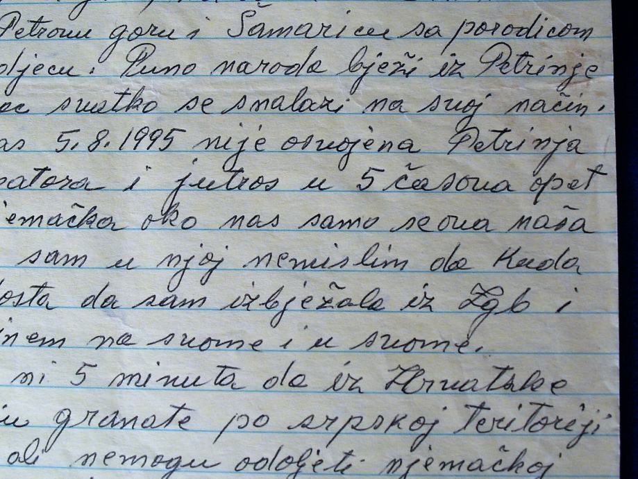 PISMO SRPKINJE IZ KRAJINE IZ OLUJE 5.8.1995 Petrinja Srpska vojska