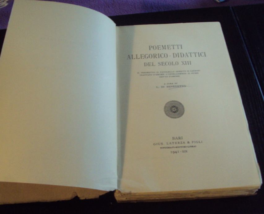 Poemetti allegorico - didattici del secolo XIII Scrittori Ditalia