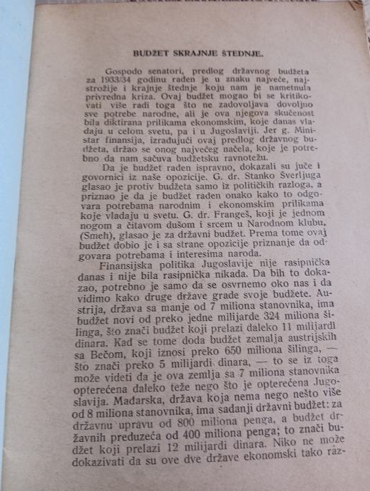 Prodajem knjižicu ( govor senatora Jov. Banjanina), politika Jugoslavenskog jedinstva protiv punktacija,razora i mržnje, govor senatora Jov.Banjanina izrečen u senatu Kraljevine Jugoslavije prilikom pretresa budžeta za godinu 1933/34. Stanje odlično,rijetkost. Plačanje na račun ili gotovina.