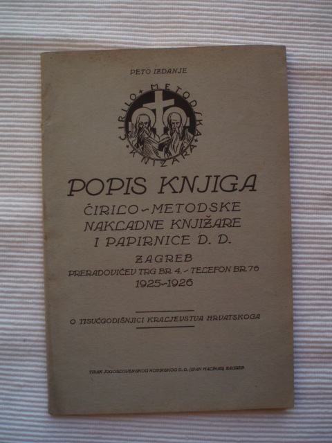 Popis knjiga Ćirilo-metodske knjižare, 1925-1926 god