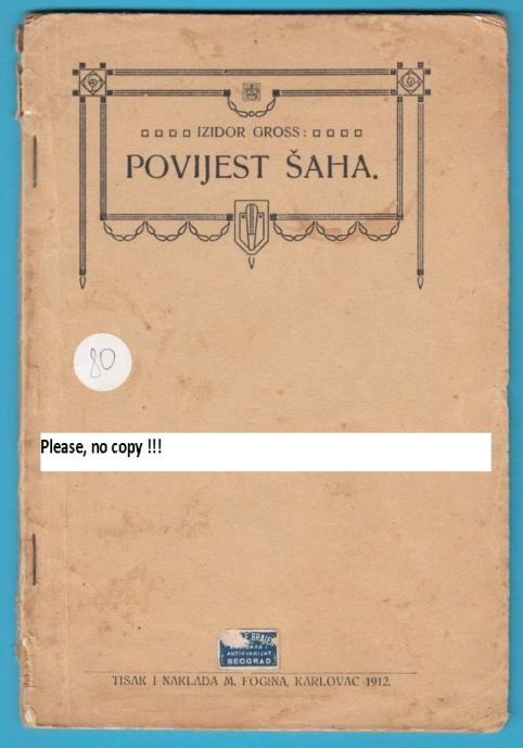 POVIJEST ŠAHA - Izidor Gross (Karlovac 1912.) stara originalna knjiga