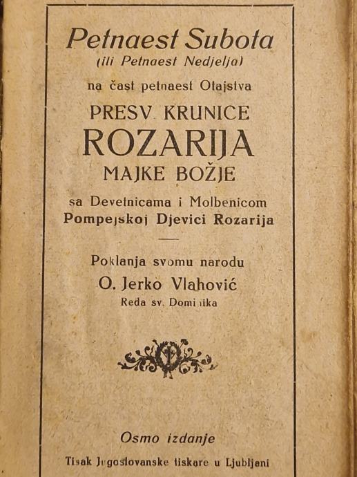 Stari molitvenik Petnaest subota presvete krunice Rozarija ružarija