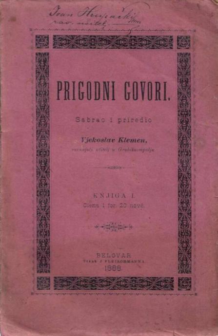 Knjiga objedinjuje 241 prigodni govor što ih je sakupio Vjekoslav Klemen, ravnajući učitelj iz Grubišnog Polja. Knjiga je posvećena Budi Budisavljeviću Priedorskomu.
