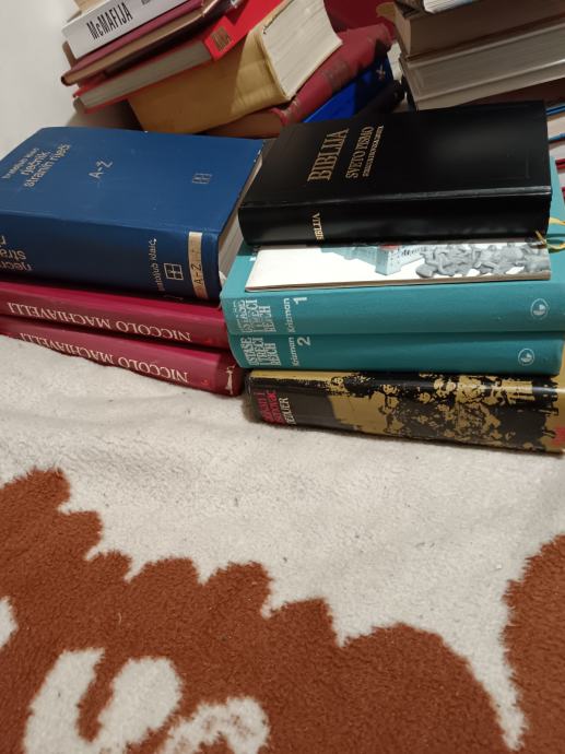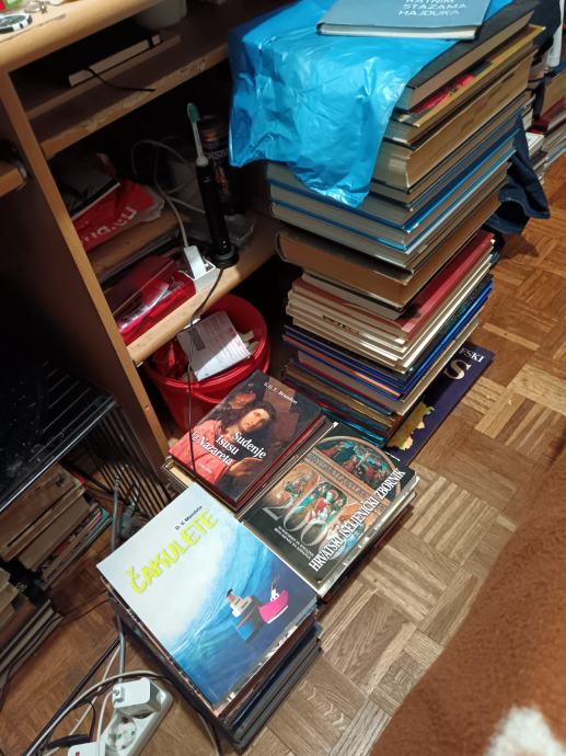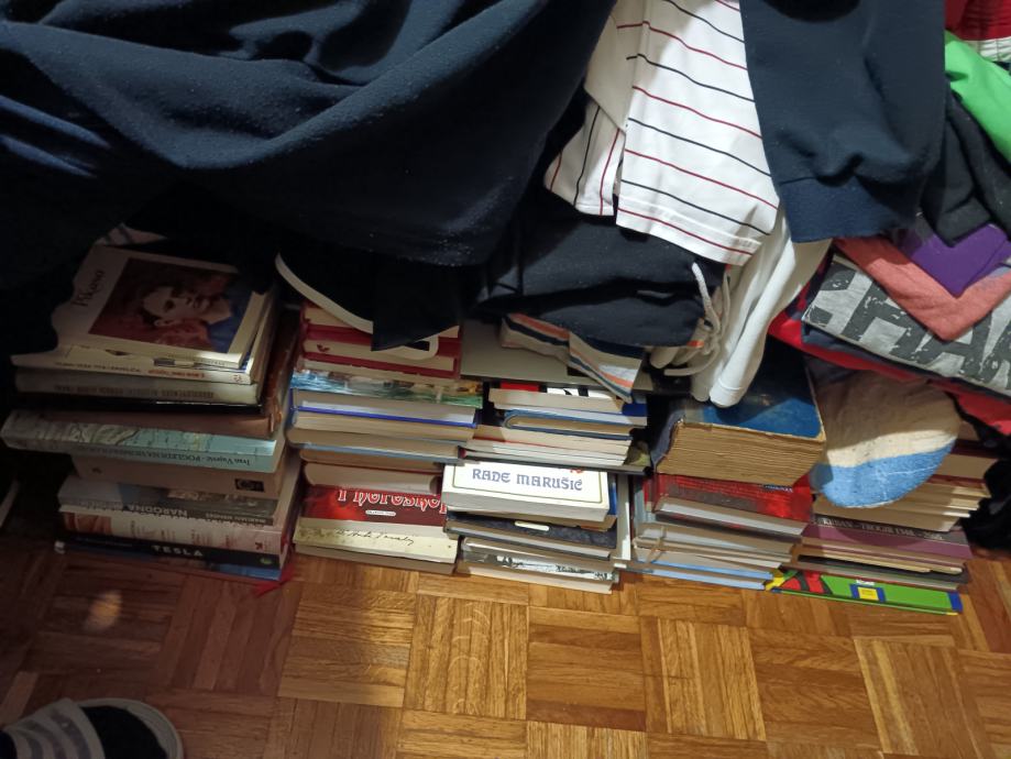 Prodajem oko 500 knjiga, ima zbilja svega, pronaći će se svašta za svakoga, zbilja ima puno odlično očuvanih I zbilja odličnih stvari, prodaje se sve zajedno, nalazim se u Splitu..otprilike ide 1 euro po knjizi..